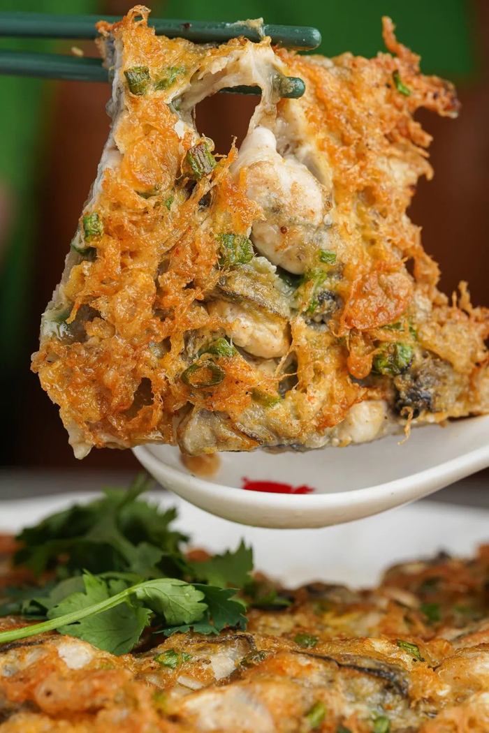 看这焦脆飘香的蚝仔烙,每一口都能吃到饱满肥美的蚝肉。个头虽不大,但一嚼就会迸发出鲜甜的汁液,太满足了!