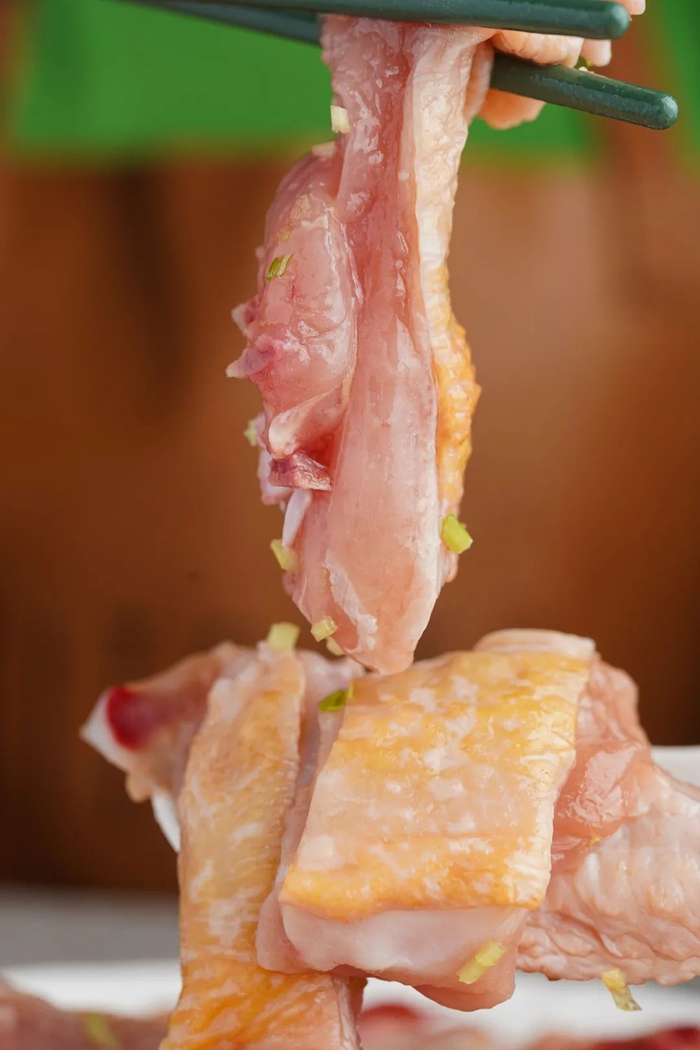 品尝完靓汤底,就该走地鸡出场了!豪气的老板包了一座山头放养的靓鸡,只吃玉米稻谷!肉质细嫩鲜美,连鸡胸肉都不柴!
