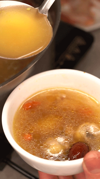 橄榄松茸汤香气四溢,清洌鲜美。喝一口,那甘甜顺喉,再沁入肺腑。味蕾瞬间被打开,这美妙滋味令人沉醉!