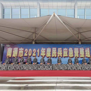 南通市委常委、军分区周建新司令员表示,今年市属民兵应急营依托市交通运输局机关和下属单位、市国资委所属6家国企、南通经济技术开发区和蓝天救援队编建,共310人,党员比例50.8%,退役军人比例39.35%,高中以上学历96.77%,关键指标均达到上级要求。市属民兵应急营是全市唯一一支营级建制的民兵分队,平时担负反恐维稳、抢险救灾、安保警戒、应急救援等任务,战时担负防卫作战、支援保障、动员支前、防间反特、巩固后方等任务,是南通市维稳处突、抢险救灾、应急救援的“拳头”力量。