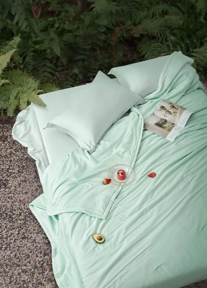 洗完澡,钻进这床顺滑的艾草薄荷夏凉被,我甚至感觉皮肤都更嫩滑了,整个人都更爽快!