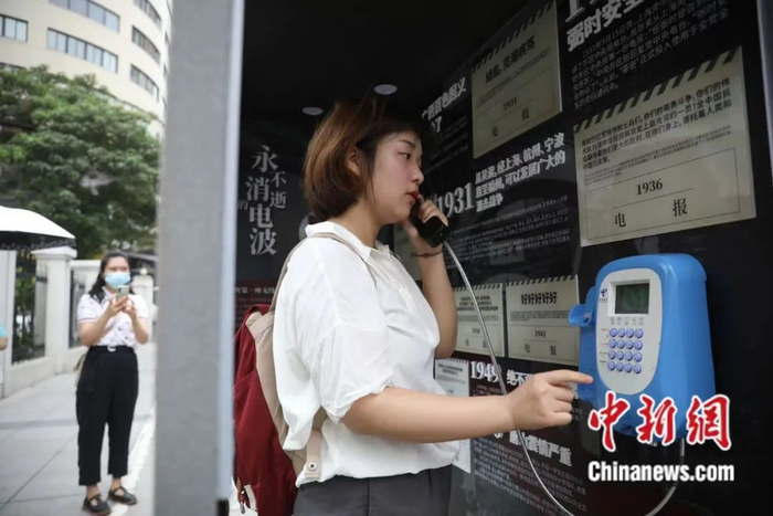 “上海是党的诞生地,也是红色通讯的起源地,欢迎致电上海电信庆祝建党百年红色故事专线……”在上海市中心的延安西路的电话亭里,小新尝试拨打了“20210701”,电话那头立马传来红色历史故事的讲解声音。