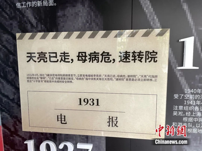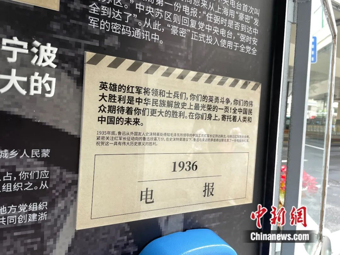 延安西路这间电话亭新近被改装成石库门风格的“电波亭”,亭内重现了当时革命工作的场景。其中不少图文展示的电报,沉甸甸地记录了中国共产党人可歌可泣的英雄故事,而上面的那封“家书”也位列其中。