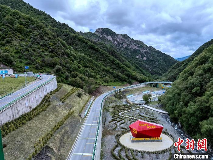 记者从扎碾公路C标段半山腰俯瞰,三段路基下穿桥梁段落,四段小半径回头曲线路段,让整个线路宛如一条“织”在青山绿水间的巨大“中国结”。不远处2700多米的隧道呈“Ω”状。
