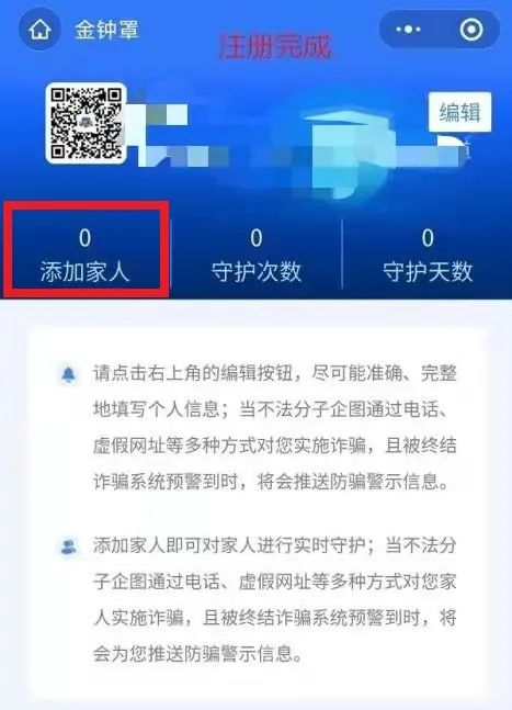 “金钟罩”是一款防范电信网络诈骗小程序,汇集了全国海量的涉嫌电信网络诈骗“黑名单”,对注册人及其添加的家人实施精准的防诈保护。