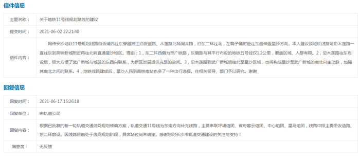 同时,有含浦片区市民在市长信箱询问含浦片区轨道交通规划情况。
