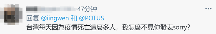 “台湾每天因为疫情死亡这么多人,我怎么不见你发表遗憾?”