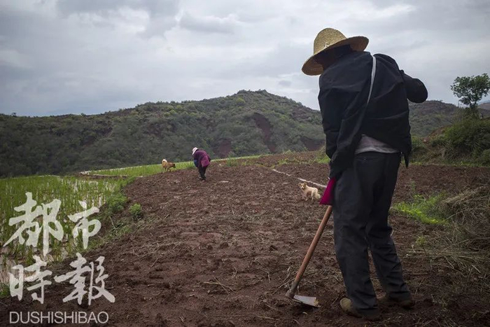 象群睡觉的无名山坡面朝正西,背靠山脊,海拔高度1530米。爬上山脊眺望,东面不远处就是赖家新村新建的村民住宅,山下是连绵的农田。初夏时节,田里种的荷兰豆刚刚收完,村民正在地里忙碌着,播种玉米和烟叶。