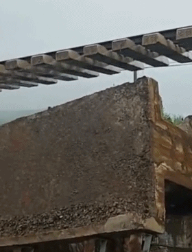 突发的洪水冲垮了桥梁,淹了河流沿岸的农场。