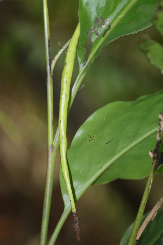 近日,文山壮族苗族自治州麻栗坡县林业和草原局抽派资源保护资源管理股工作人员协同西南林业大学云南生物多样性研究院在对麻栗坡县境内的合囊蕨科植物进行专类调查时,在麻栗坡老君山自然保护区区域内发现一种果实奇特的姜科植物,这种植物植株高80~120厘米,果荚长近20厘米。此次发现的植株共15株,经过昆明植物研究所专家确认是国家二级保护植物长果姜。