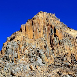 青海发现距今2.2亿年火山岩柱状节理群 酷似“巨锏”立山巅