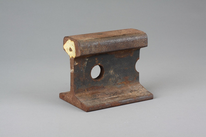 用声音刻录百年记忆,我是革命文物讲述人、公安民警陈曦骏。我讲述的文物是鹰厦铁路上的一段铁轨,现收藏于福建博物院。这段铁轨有16厘米长,成工字型,两端被锯得整整齐齐,虽已有斑斑锈迹,但仍能看出深灰的底色。为什么要把一段铁轨整齐地锯下来,永久保存?这背后又有什么样的故事呢?