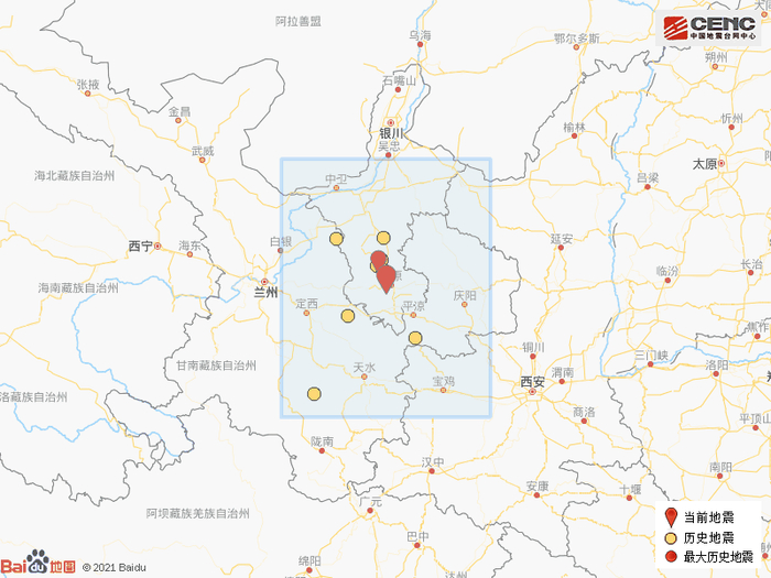 历史地震:根据中国地震台网速报目录,震中周边200公里内近5年来发生3级以上地震共10次,最大地震是2017年9月2日在宁夏固原市原州区发生的4.6级地震(距离本次震中37公里),历史地震分布如图。