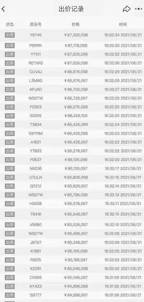 最后的几次加价记录中,在总价8000万时还有个别人加价1块钱,基本属于捣乱。