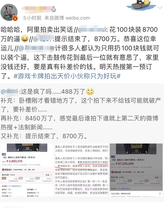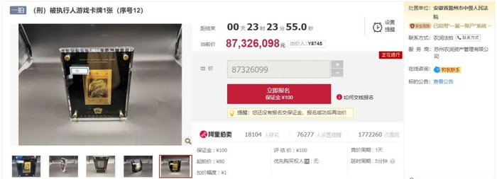 80元卡片,拍出8700万!阿里拍卖紧急叫停