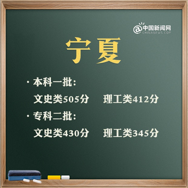 宁夏:一本文科505分 一本理科412分