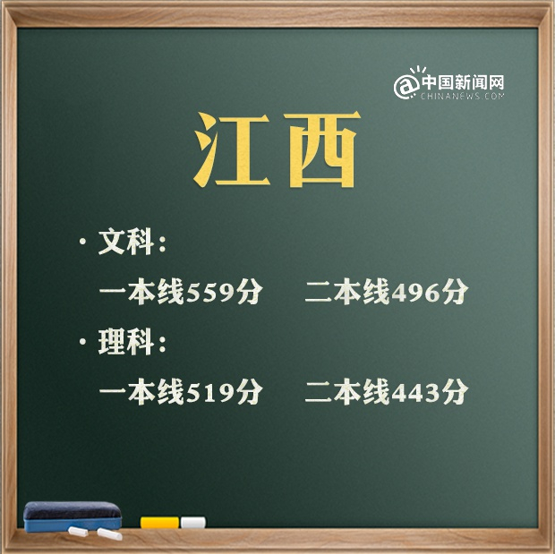 据江西省教育考试院消息,文科一本线559分,文科二本线496分;理科一本线519分,理科二本线443分。
