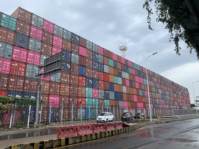 第一财经记者在17日与23日走访深圳盐田港时也发现,港区内仍层层叠放着集装箱,密密麻麻,如山如墙。