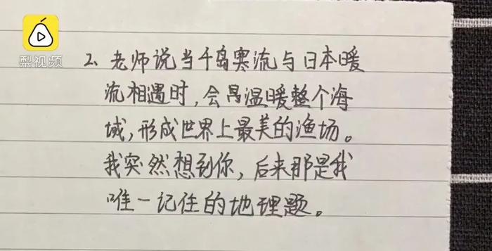 浙江金华一中学90后地理老师丁老师,4天收到700封学生写的地理“情书”。这些都是丁老师布置的作业,要求学生用地理知识写下一首首情诗。创意满分。