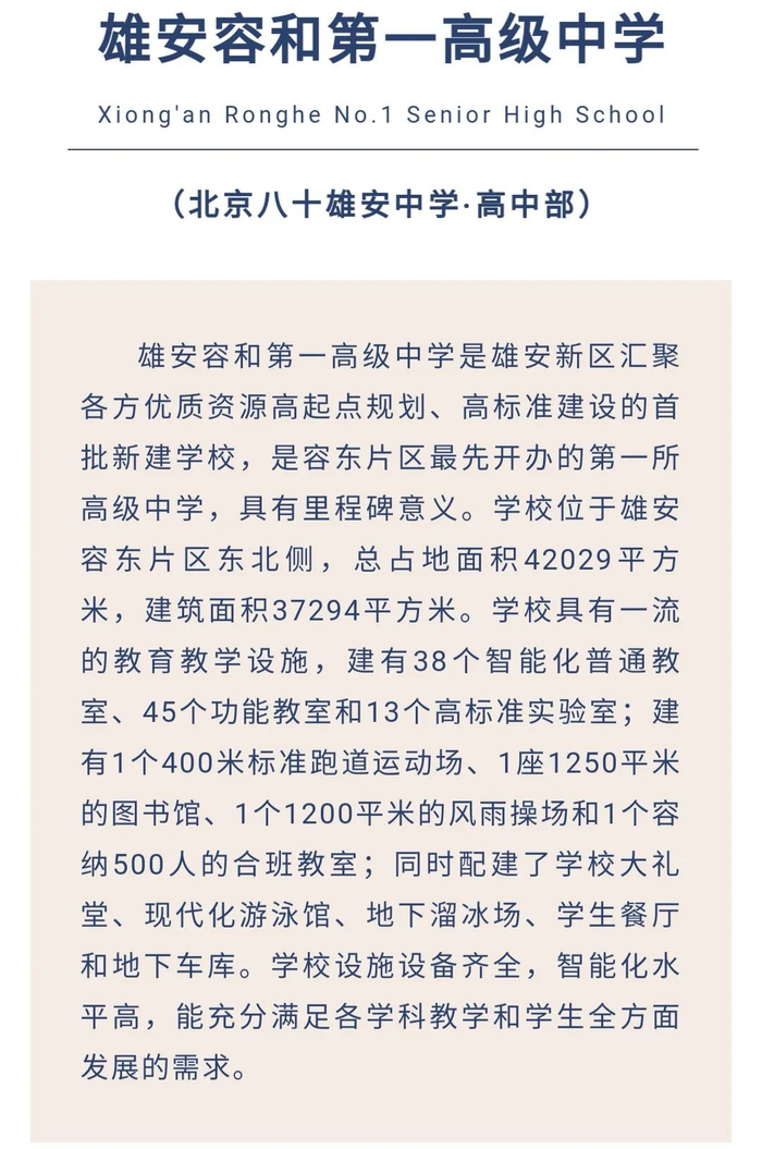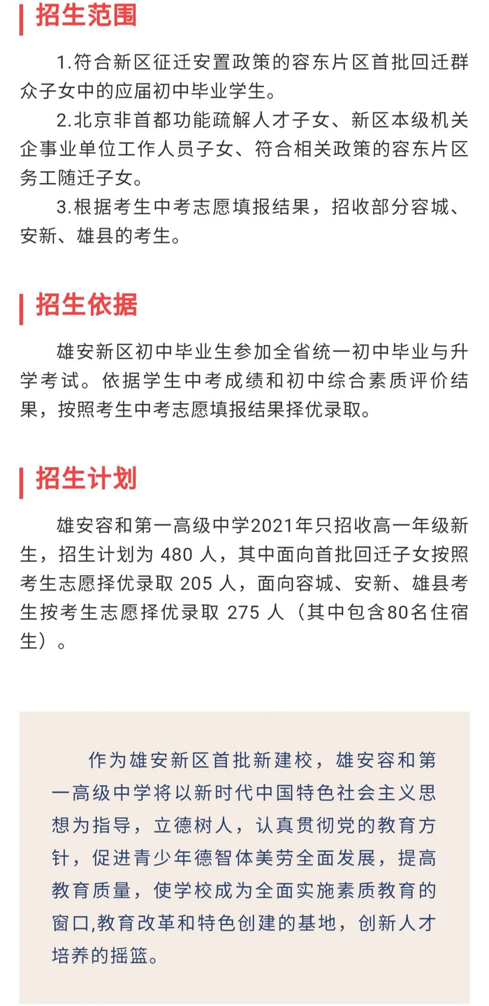 原标题:雄安容和第一高级中学2021年招生简章发布→