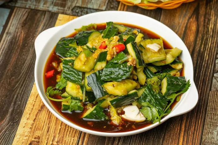 一条条墨鱼肠,入口爽脆Q弹,鲜甜无比!在炭火上烤一烤,浓郁的墨鱼味立即散发出来~酸爽麻辣的凉拌黄瓜,满满一碟,惹味又下饭,吃完小龙虾来一波凉拌,超解腻~
