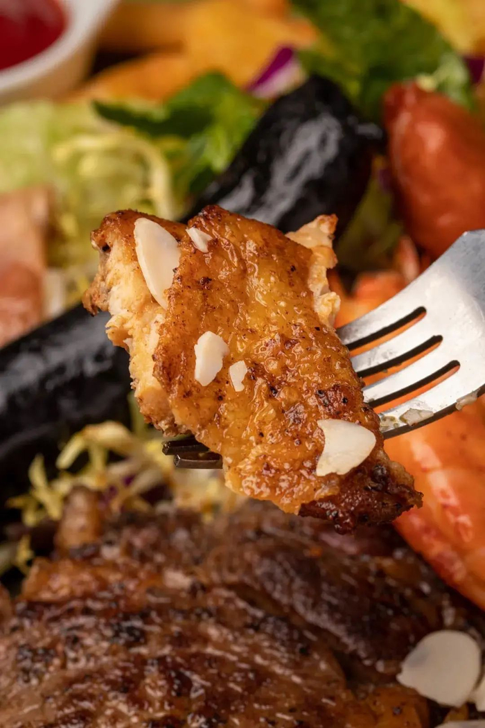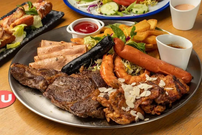 这款丰富的杂扒拼盘,嫩滑多汁的牛扒,焦香爽脆的德国烤肠,鲜香大虾,香脆厚实的美式薯条...各式肉类让你大饱嘴福~