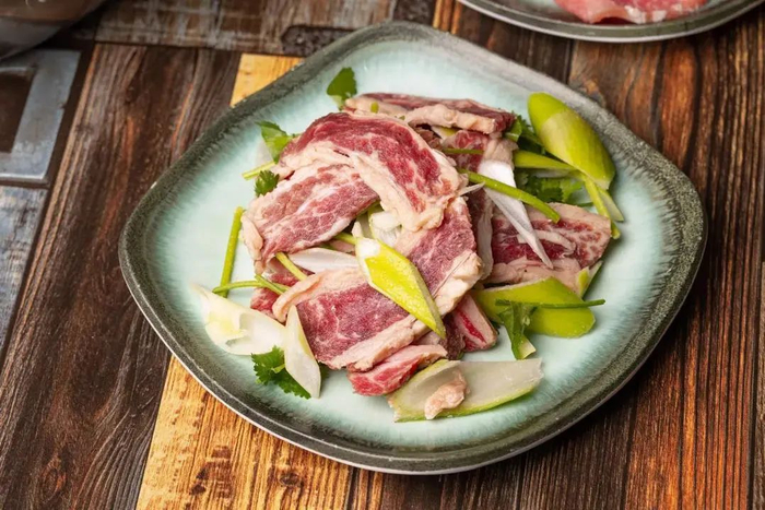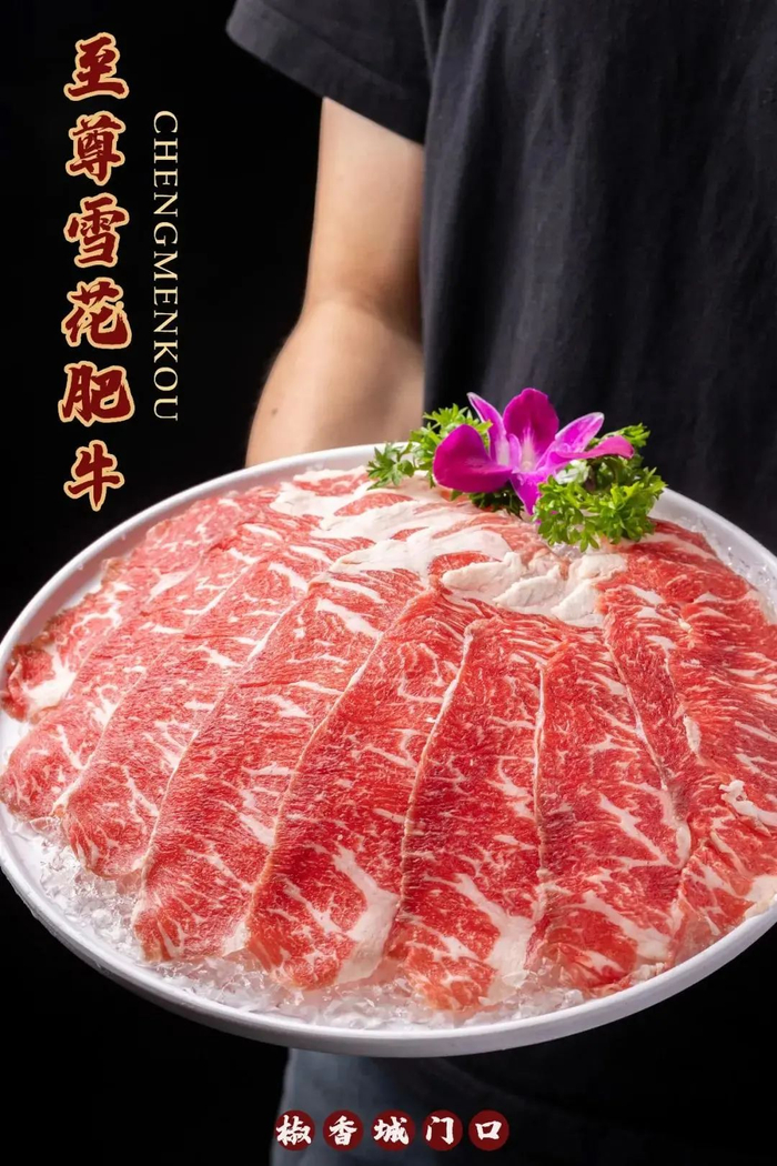 雪花板健纹理清晰、鲜红颜色的外表,入口后肉汁在舌尖划过,肉脂香在口中回荡,那个爱吃肉的胃立刻得到满足!