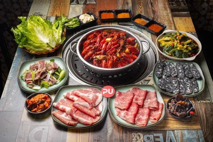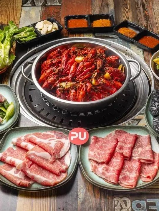 满满一锅小龙虾,红彤彤的诱人外表,肉质鲜嫩香滑,每一只都是个头十足,汤汁麻辣而鲜香!经调制后的各色肉肉,一放上烤盘就散发焦嫩的气息,超诱人~