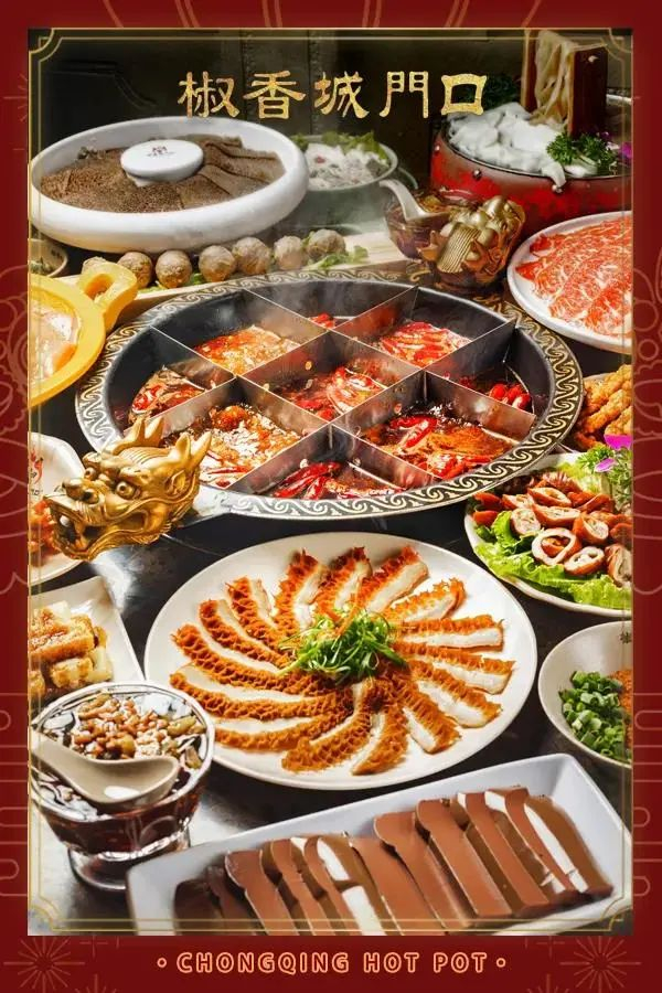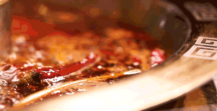 椒香城门口的招牌红油锅,纯手工炒制,加入了重庆石柱红、贵州小米辣、茂县红椒等20种香料,还有足足4斤牛油,这样才够味~