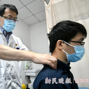 图说:上海岳阳医院推拿科主任孙武权为患者推拿 新民晚报记者 徐程 摄(下同)