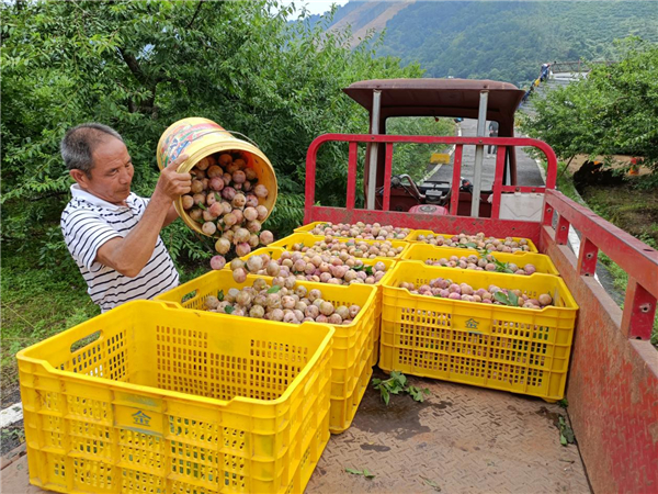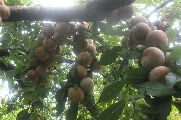 随后记者钻入其中一片李子林,看到了种植大户杨双球正带着工人采摘三华李。“我们在这里聘请了40多名工人,种了120多亩的三华李,预计今年产量能到30多万斤,根本不愁销路咧。”说起自家的三华李,杨双球信心满满。