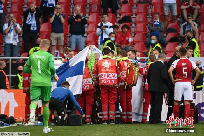 在B组首轮丹麦和芬兰的比赛上半场临近尾声时,丹麦头号球星埃里克森在无对抗情况下倒地失去意识,医疗团队对其进行了紧急的心脏复苏,随后埃里克森被送往医院进行进一步治疗。