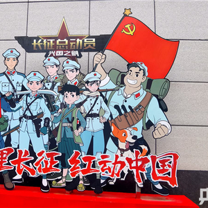 央广网赣州6月23日消息(记者胡斐 见习记者杨丽)在江西省赣州市兴国县的街头,很多地方都可以看到红军形象的动漫人形立牌,和一般的红军动漫形象略有不同的是,兴国街头的这些动漫人物都有自己的名字,他们是兴国当地红色动漫IP——中国长征IP动画电视剧《长征先锋》中的角色人物。