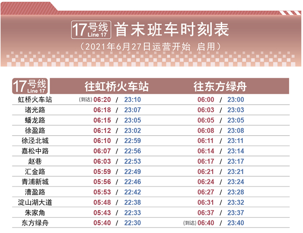 另外,上海地铁根据17号线夜间客流特征,计划于6月27日起,17号线末班车常态化延时运营30分钟,进一步方便夜间青浦地区的市民轨交出行。