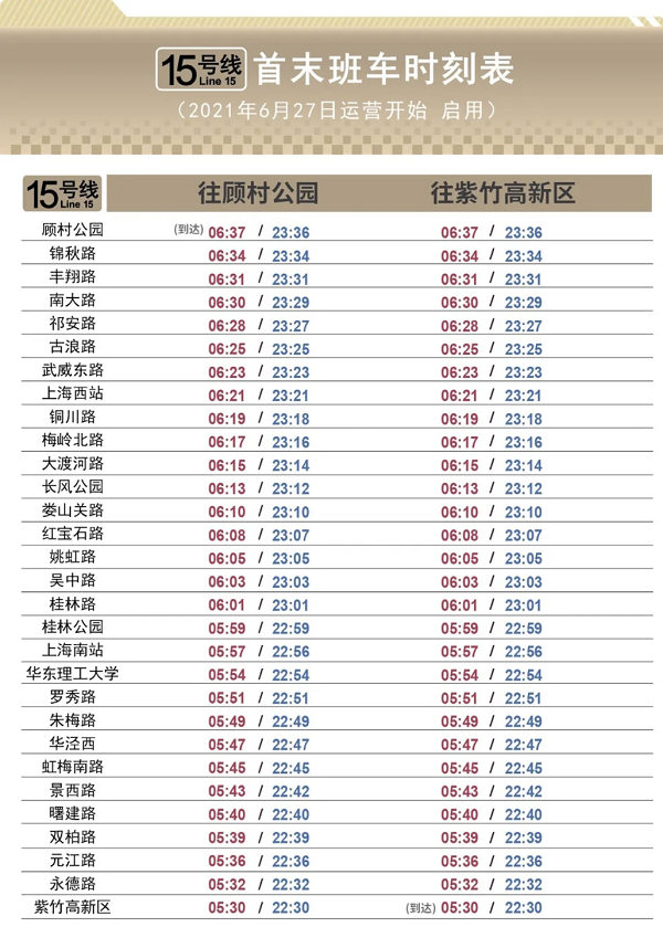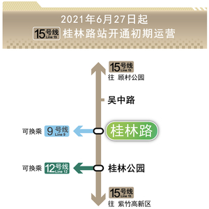 原标题:6月27日起15号线桂林路站开通初期运营 17号线末班车延时运营