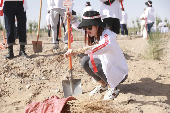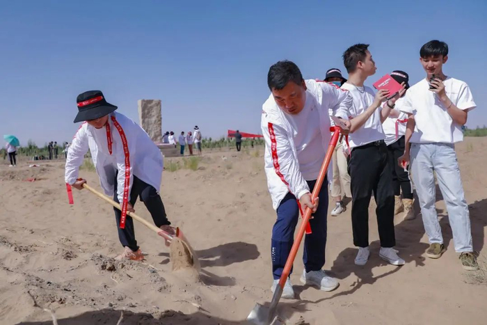 “一直以来,燕之屋都奉行天人合一、人与自然和谐共生的生态理念,我们取材于自然,也回报自然,我相信,今天我们在这里种下的每一棵树,都将为敦煌增加森林面积、提高森林质量,为实现我国碳中和目标做出了点滴贡献。”