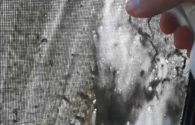 在纱窗上喷上本款清洁剂后
