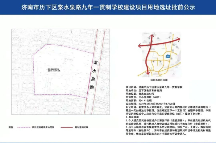 项目位于济南市历下区凤山路以西,兴港路以南,用地性质为中小学。