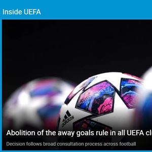 原标题:欧足联取消客场进球规则 球迷们并不是很赞同