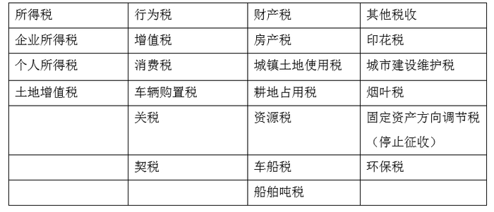 综上所述,若按征税范围的标准,可将现行税种分为四大类,如