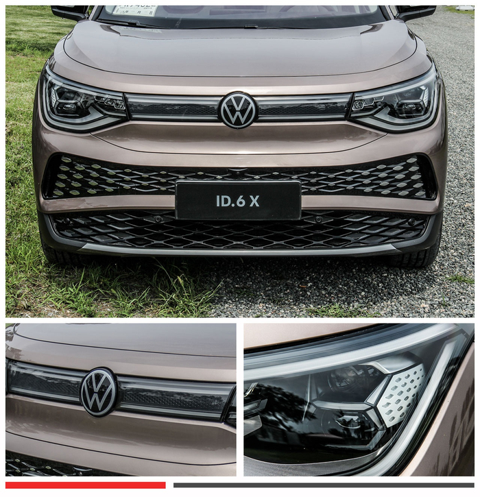 在外观方面,ID.6 X也采用了ID系列“光语”律动设计语言,相比ID.4 X的前脸设计更为宽厚饱满,不仅将格栅上的贯穿灯带从一条变为了两条,还将下格栅面积扩大,并在内部用菱形镀铬装饰加以点缀,让整个车头看起来比ID.4 X立体更有层次感,也符合它家用的气质。