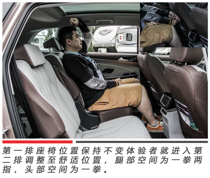 第二排座椅样式和舒适性与前排保持一致。此外,第二排座椅的前后位置和靠背角度均可手动进行调节,还配备有独立扶手和座椅加热功能。 第三排座椅与前两排相比略显单薄,不过靠背角度还算合适,并配备了独立头枕。