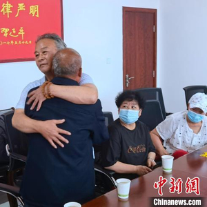 6月24日上午,61岁的葛迪(化名)在银川市公安局刑侦支队民警的陪同下,在陕西省宝鸡市太白县和失散61年的二哥葛宇(化名)团圆。据了解,葛宇(化名)是我国目前已知找回失踪时间最长的失散人员。银川警方通过大数据库比对,在宝鸡警方的紧密协作下,最终使失散61年的兄弟成功团圆。(记者 杨迪 李佩珊 )