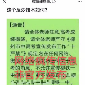 在网上出现的各类高考成绩信息中,涉及广西柳州铁一中的一则“通告”热传,其中即有火热的“高考”信息。