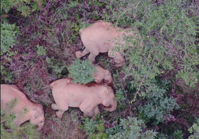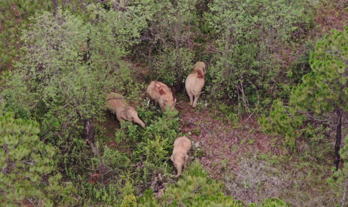 6月23日18时至6月24日18时,象群总体继续向南,经过4个村庄,迁移23公里,在峨山县富良棚乡附近林地内觅食活动。独象位于象群东偏北方向,距离象群35.8公里,持续在昆明市晋宁区双河乡附近的林地内活动。15头象均在监测范围内,人象平安。