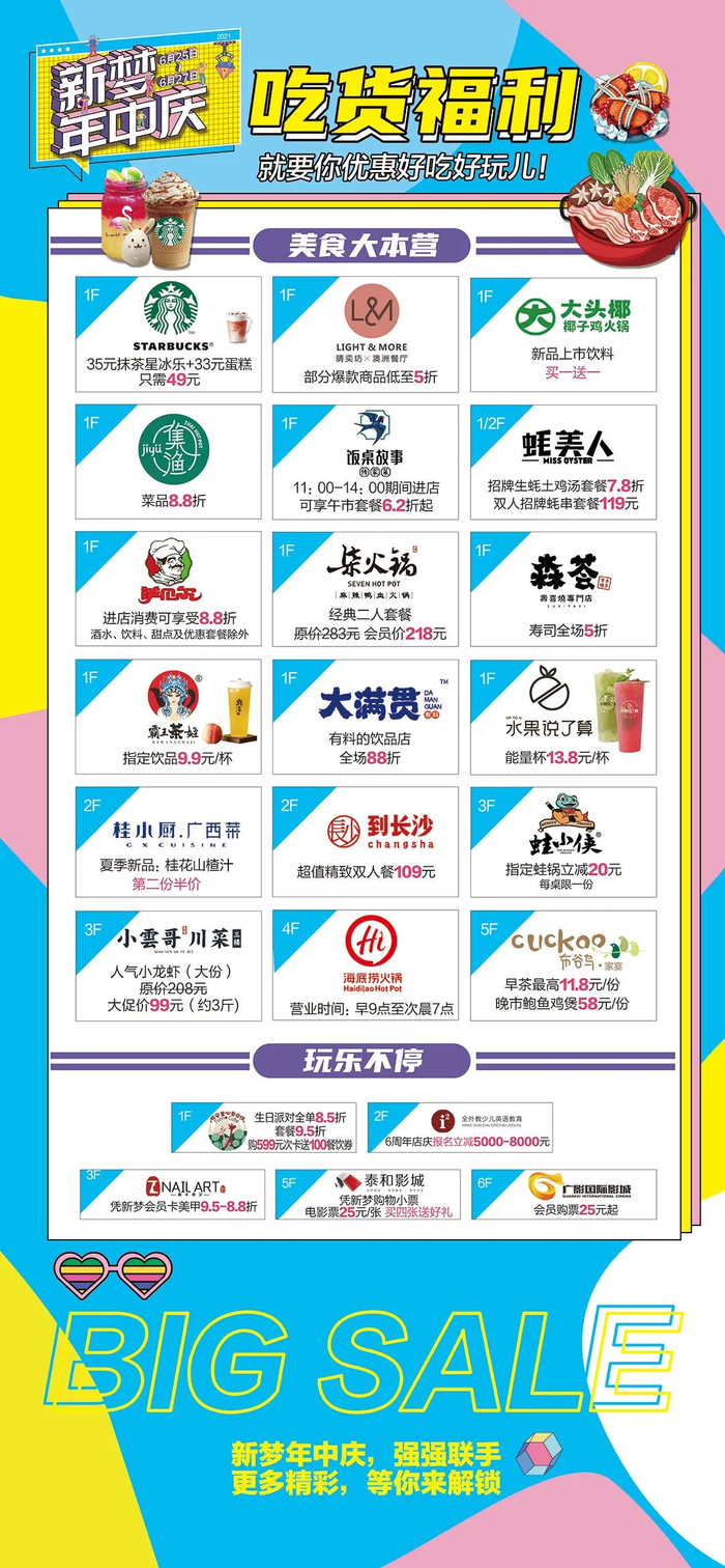 新梦的餐饮商家越来越多,这次的新梦年中庆,大家也都纷纷给出了最大的优惠力度。