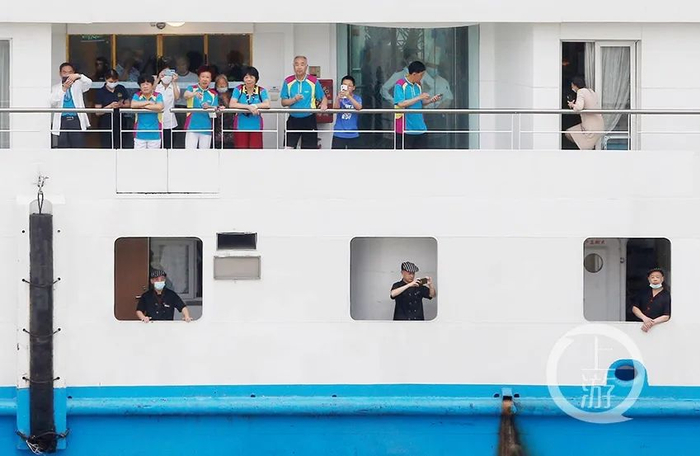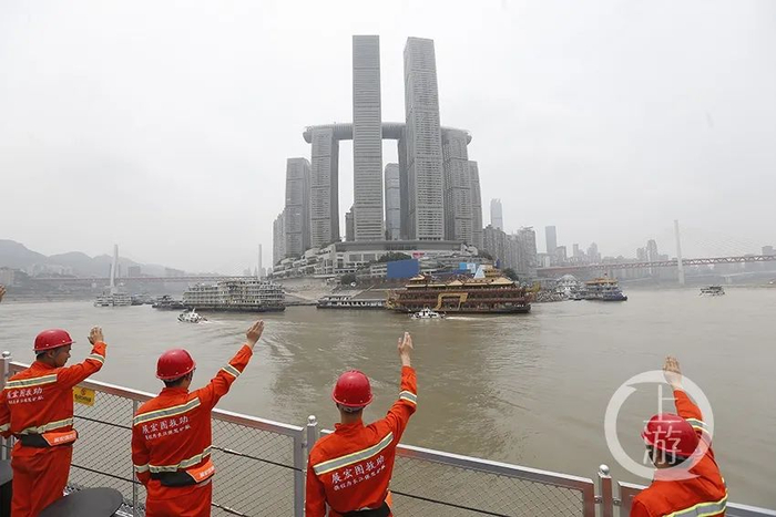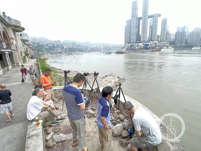 铜锣峡,朝天门,南滨路,九龙广场,建设码头……一路逆流而上,沿途的市民早已在岸边,桥上等候,和家人朋友一起见证这一时刻。