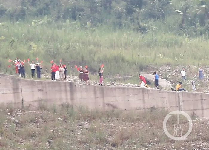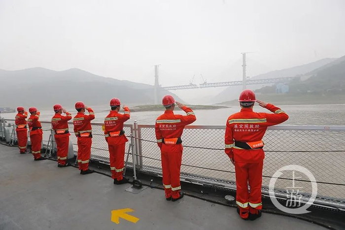 早上6点15分,明月沱码头,东港船舶公司20多人前来欢送。