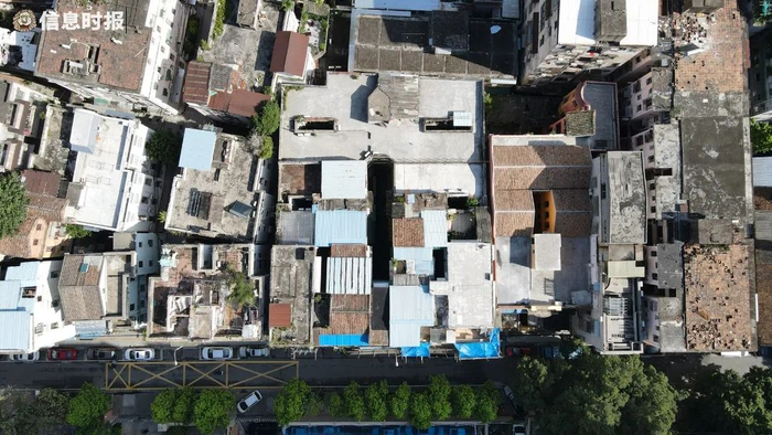 这是一座“n”字形洋楼,由5幢三层高的楼房连成一体。楼房为钢筋混凝土结构,花阶砖地面,巷口原有两扇铁闸,上有“文德楼”横匾。穿过拱门下斑驳的铁门,里面是一条十余米长的小院子。
