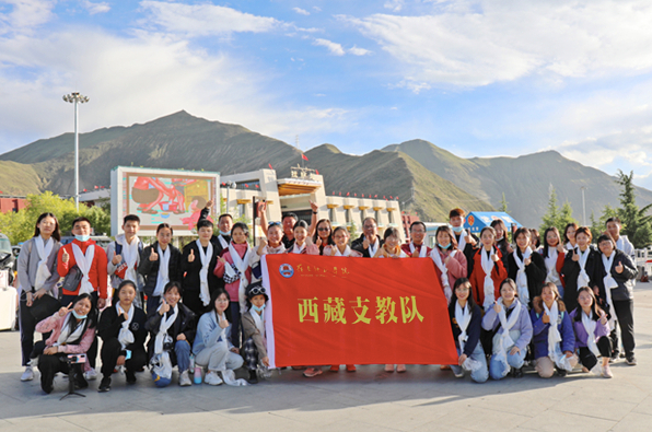 2021年3月27日,岭南师院第八批西藏支教队出征师生接过“援藏良驹”接力棒,从广东湛江出发,前往西藏林芝,开始新一轮的援藏支教工作。1987年,岭南师院就开始援藏支教工作,2014年,先行试点探索援藏支教实习项目,目前已被推广到广东12所高校共同参与,成为新时代粤藏携手深化学生家国情怀教育的有力抓手。“援藏大户”岭南师院,34年援藏初心不改,情怀不变,弦歌不绝,一批批“援藏良驹”接力传承,续写新时代雪域高原援教赞歌。